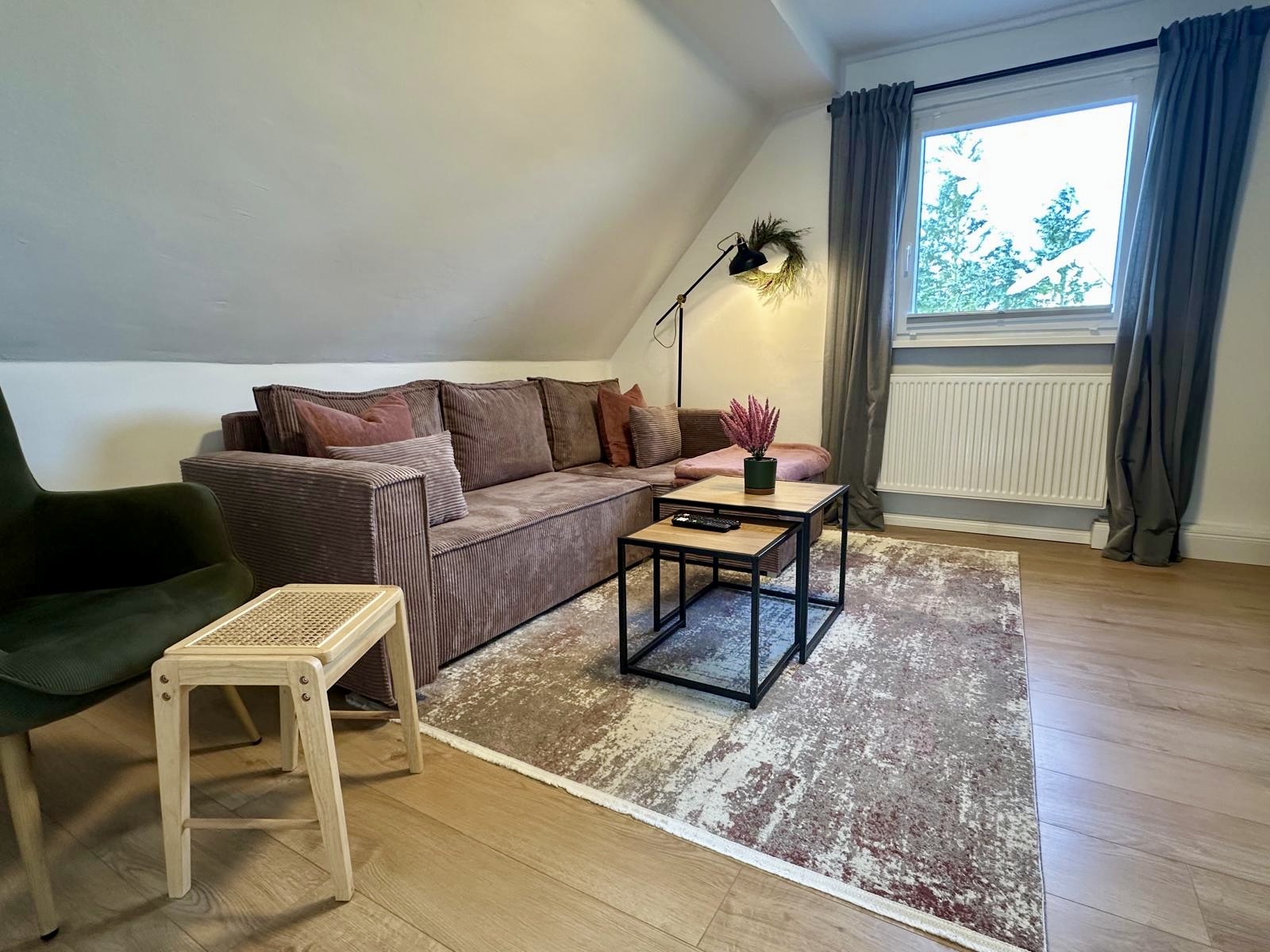 Die Ferienwohnung befindet sich im Obergeschoss eines Einfamilienhauses am Ortsrand umgegeben von Wäldern. Die Wohnung ist ein eigener Wohnbereich, der vom Erdgeschoss abgetrennt ist. Mit viel Liebe zum Detail wurde die Wohnung 2023 frisch renoviert und mit neuen, stilvollen Möbeln eingerichtet. Bei der Gestaltung wurden bewusst Farben und Elemente der Region ausgewählt, um den besonderen Charme der Natur von draußen in die Innenräume zu bringen. Auf einer Wohnfläche von ca. 50 m² findest du alles, was du für einen angenehmen Aufenthalt und entspannte Urlaubstage benötigst. Natürlich ist die Nutzung des WLANs im Preis inklusive.